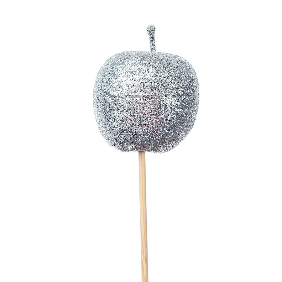 Яблоко с глиттером на вставке, D5x50см, серебряный