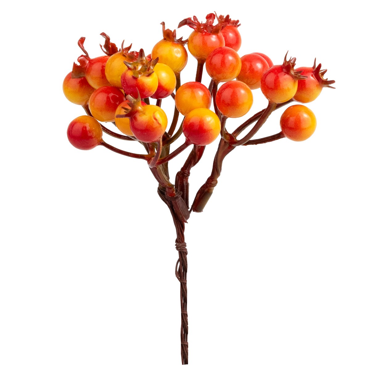 Набор веток с ягодами на вставках 5шт., H13 см, оранжевый