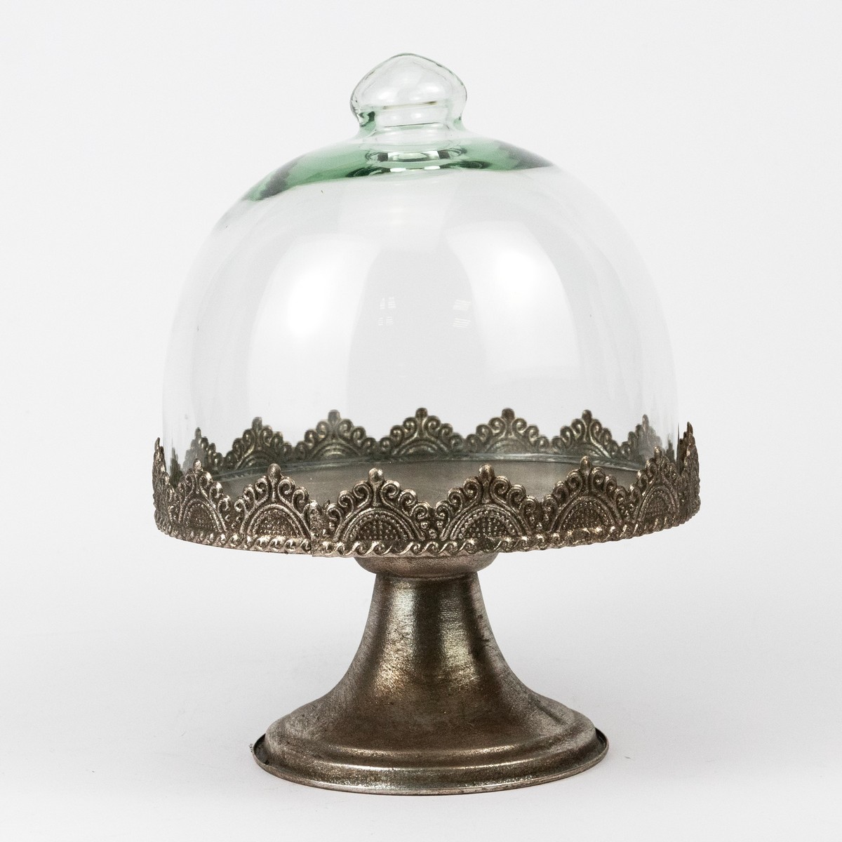 Блюдо на ножке с крышкой (металл/стекло), D16xH21см, серебряный