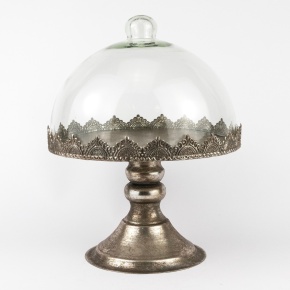 Блюдо на ножке с крышкой (металл/стекло), D21xH26см, серебряный