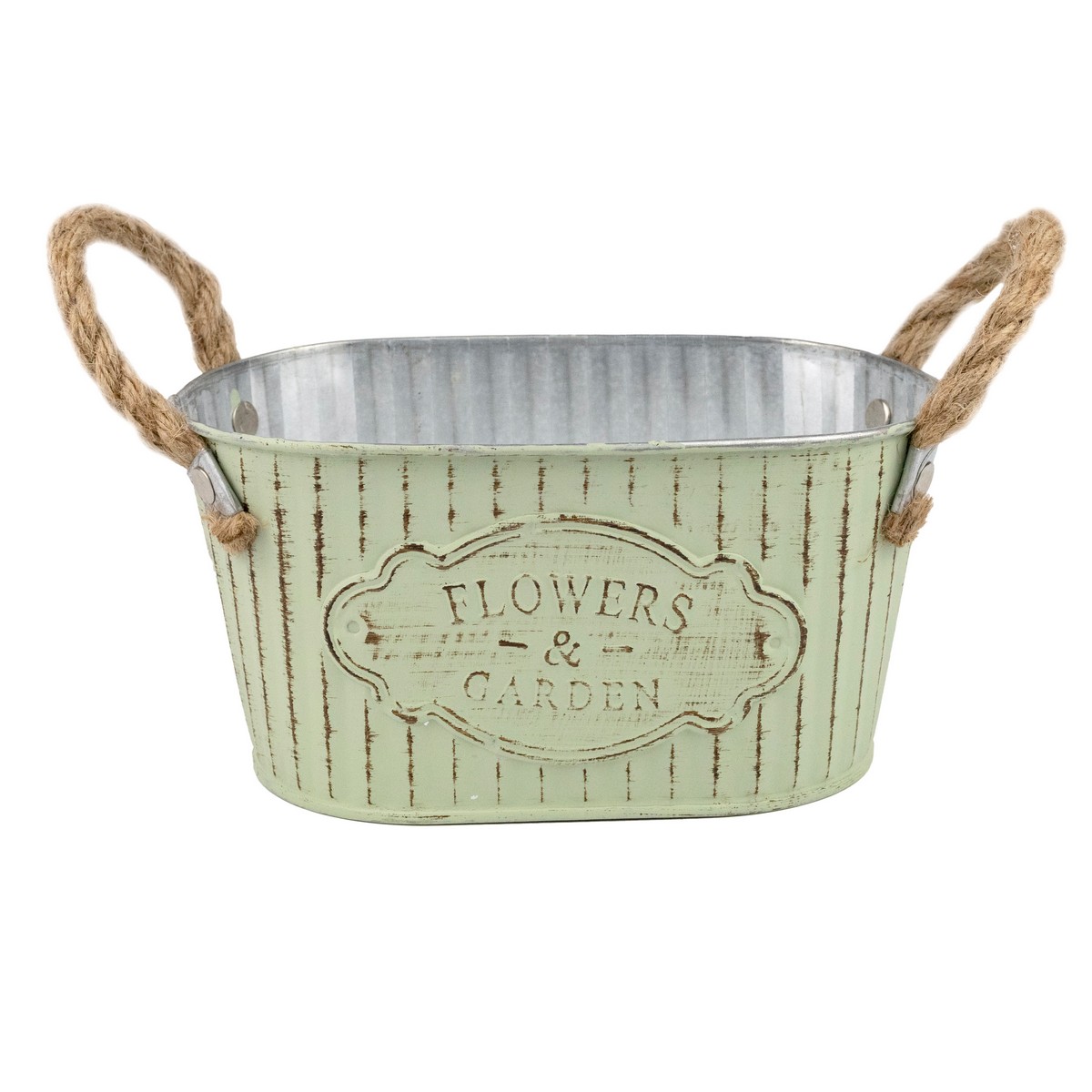 Кашпо с ручками (металл), 24x14хH11см, зеленый