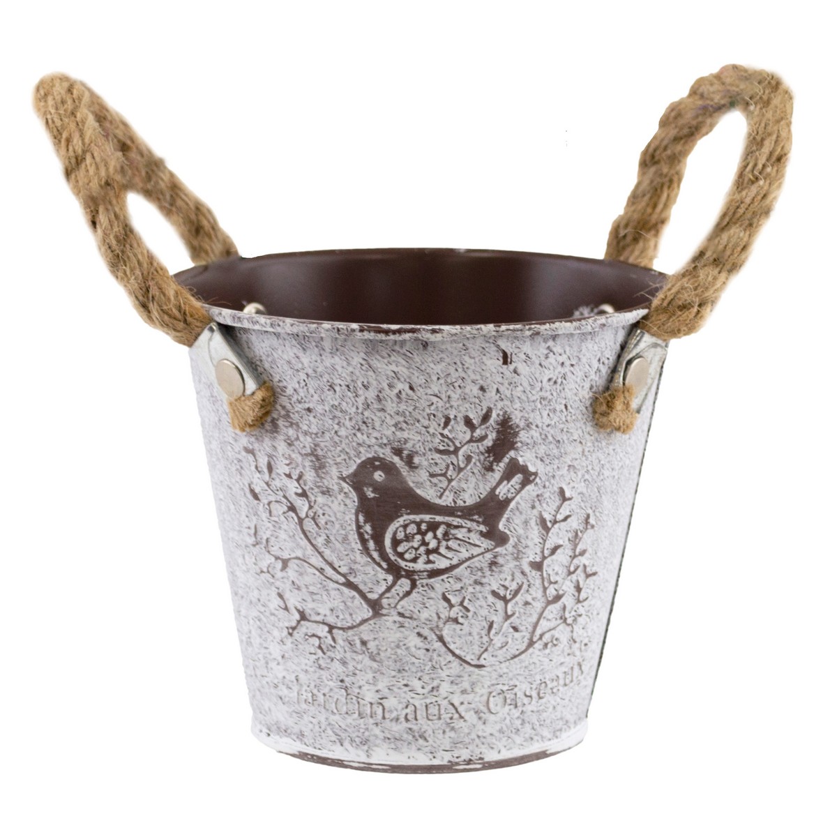 Кашпо с ручками Птичка (металл), D12хH10см, белый/коричневый