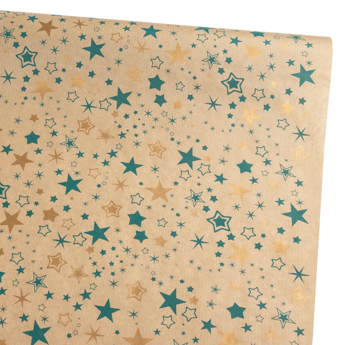 Бумага упаковочная крафт Звезды 40гр, 72 см 10 м, натуральный/изумрудный
