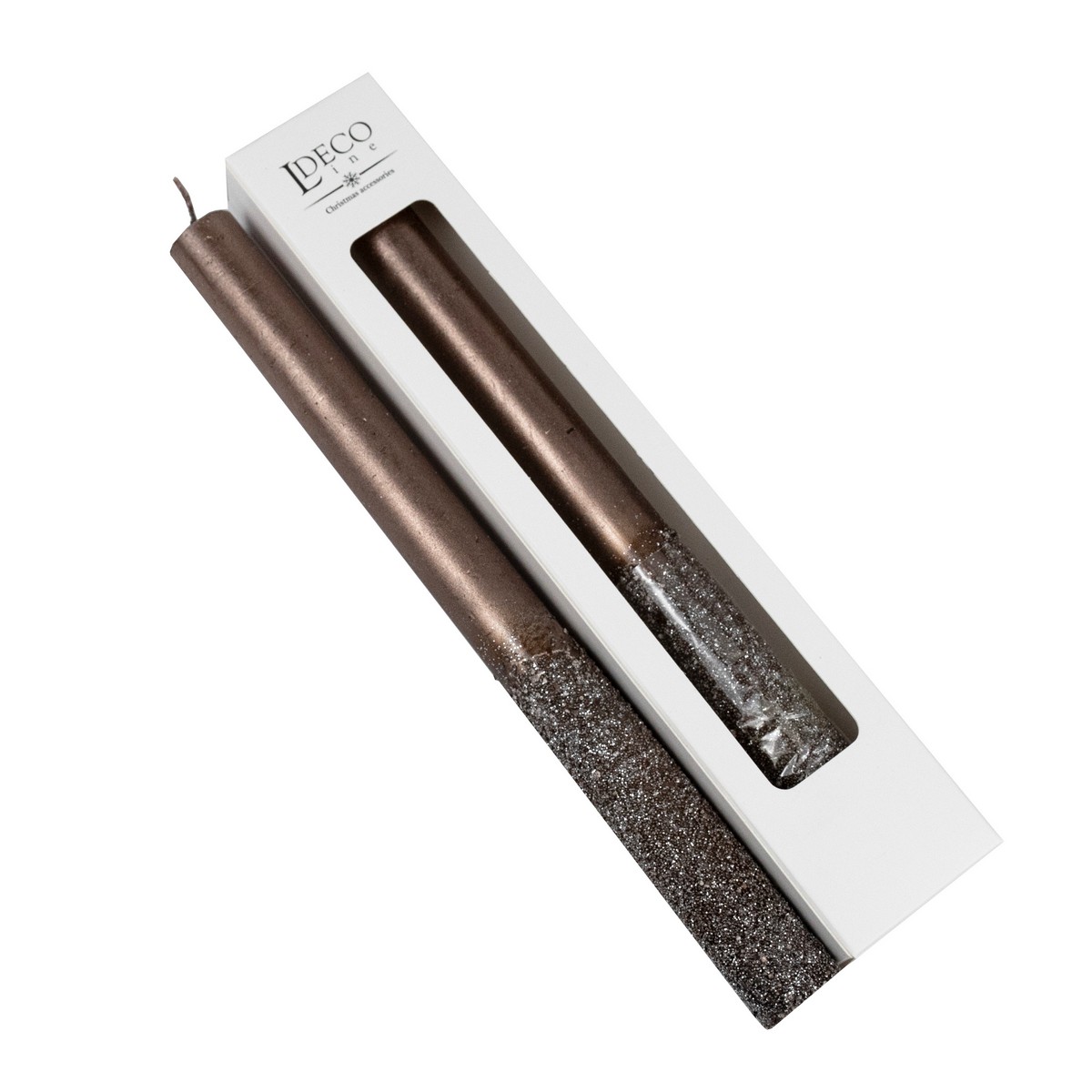 Набор столовых свечей с глиттером 2шт., H25xD2см, коричневый