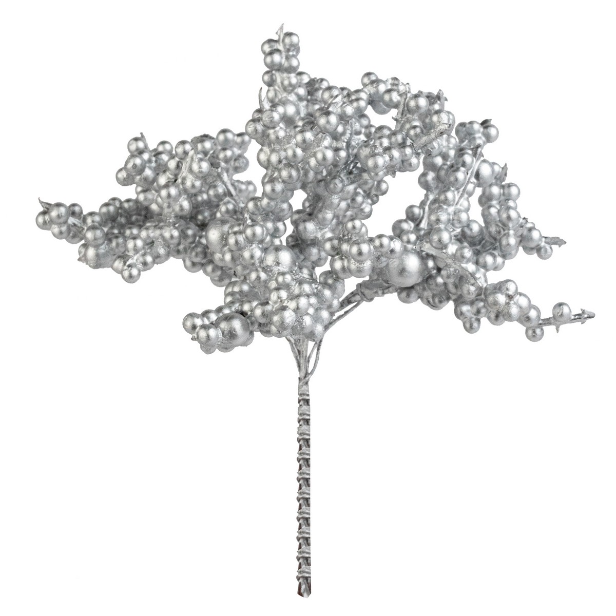 Набор веток с ягодами на вставках 4шт., H13см, серебряный