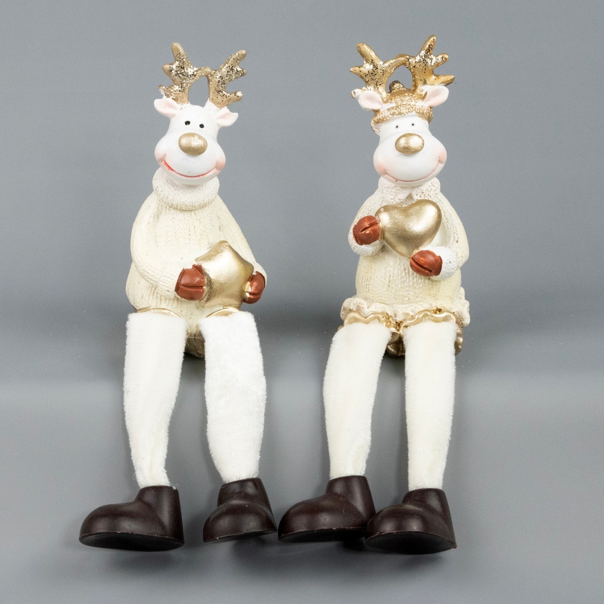Сувенир Олень Мальчик/Девочка сидящий (полирезин), Н10,5х5х4,5см, в асс., шампань