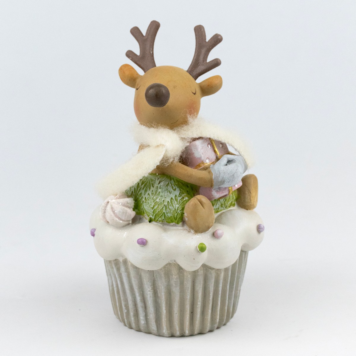 Сувенир Олень на капкейке (полирезин), Н17,5х10х10см, зеленый