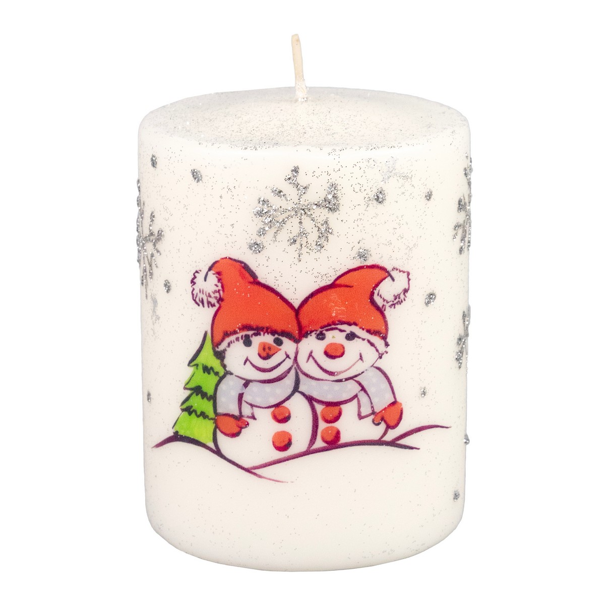 Свеча-столбик Снеговички (33 часа), D7xH10см, белый