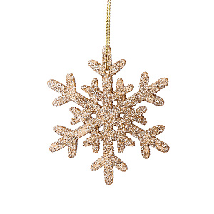 Украшение подвесное Снежинка с глиттером (дерево), 8х8см, шамп.