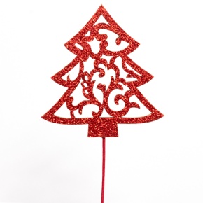 Вставка Елочка с глиттером, 8хH20см, (в уп. 12шт.), красный