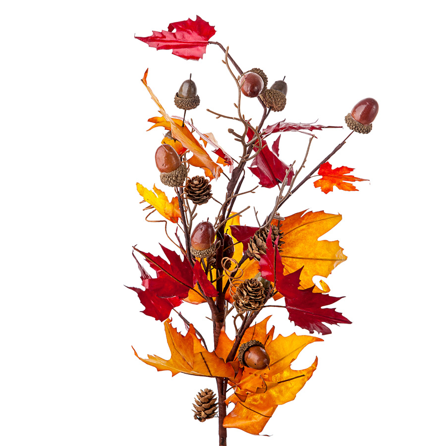 Ветка с клена с желудями и шишками, 70см, желтый/оранжевый