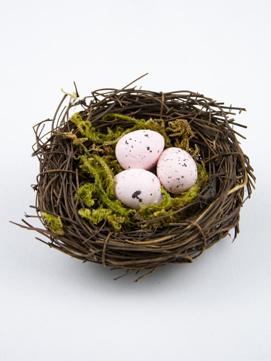 Набор гнезд с яйцами 2шт., D6см, розовый