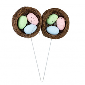 Набор гнезд с яйцами на вставке 2шт., H26х5см, цв. в асс.