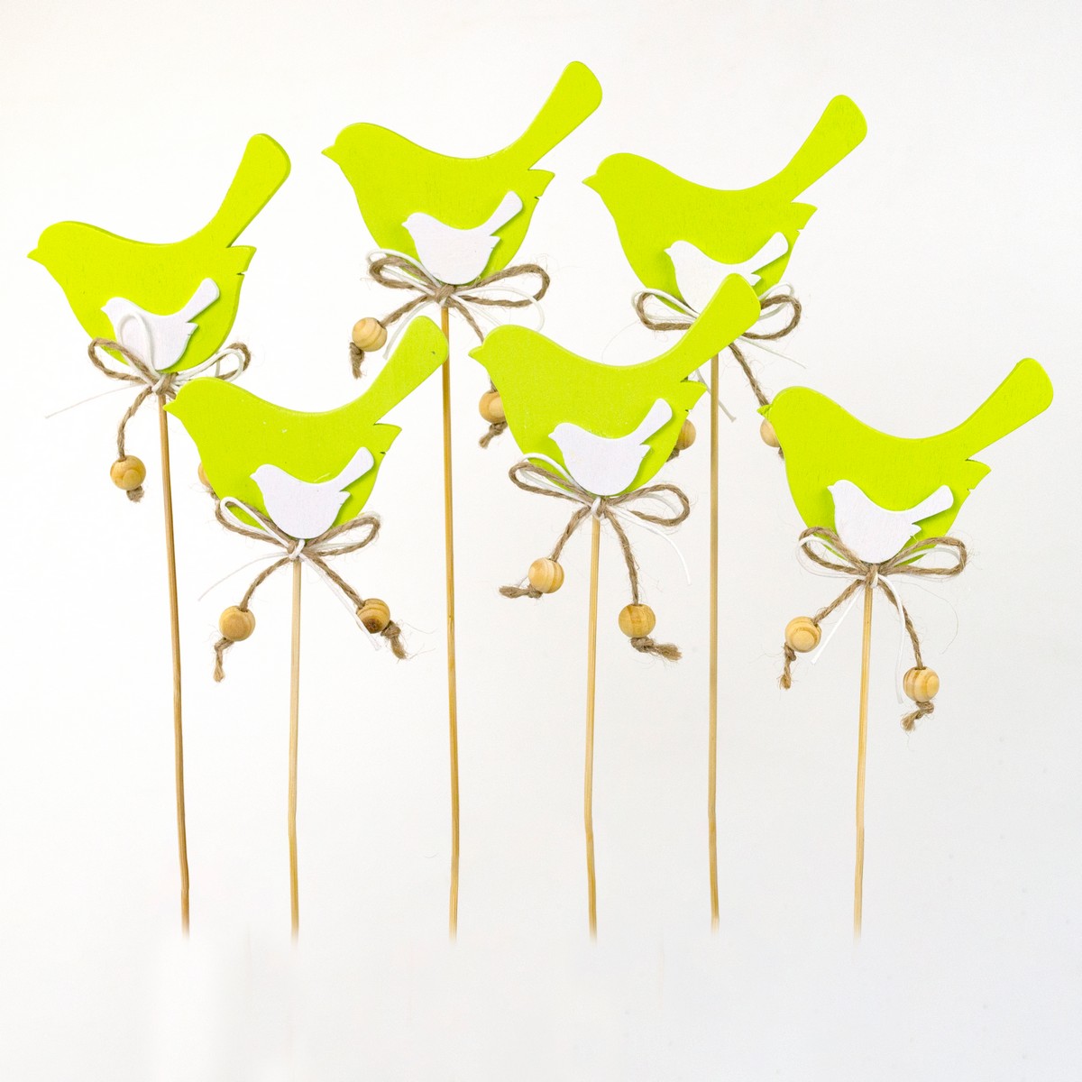 Набор вставок Птичка 6шт. (дерево), 8хH28см, зеленый