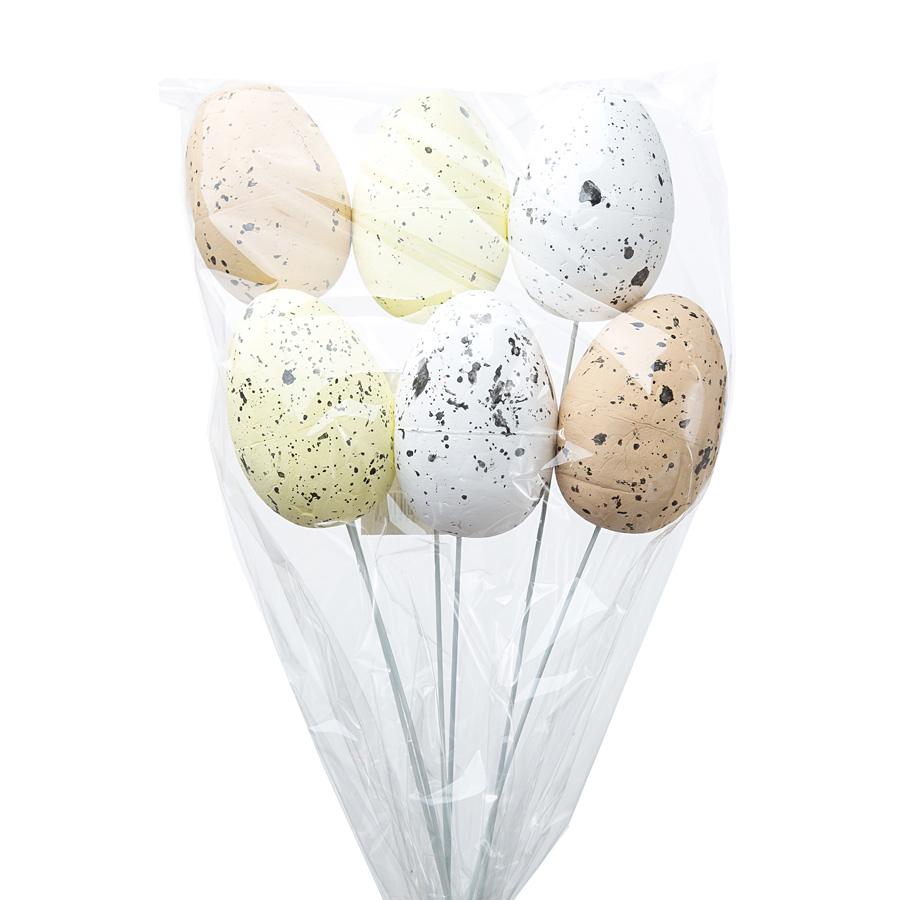 Набор яиц на вставке 6шт. (пенопласт), H30х6см, цв. в асс.