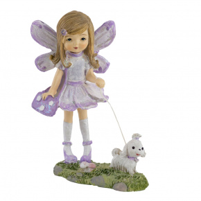 Сувенир Фея с собачкой (полирезин), H13x10x7см, сиреневый