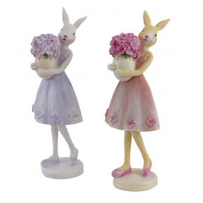Сувенир Крольчиха c цветами (полирезин), H21,5x8x8см, в асс., розовый/голубой