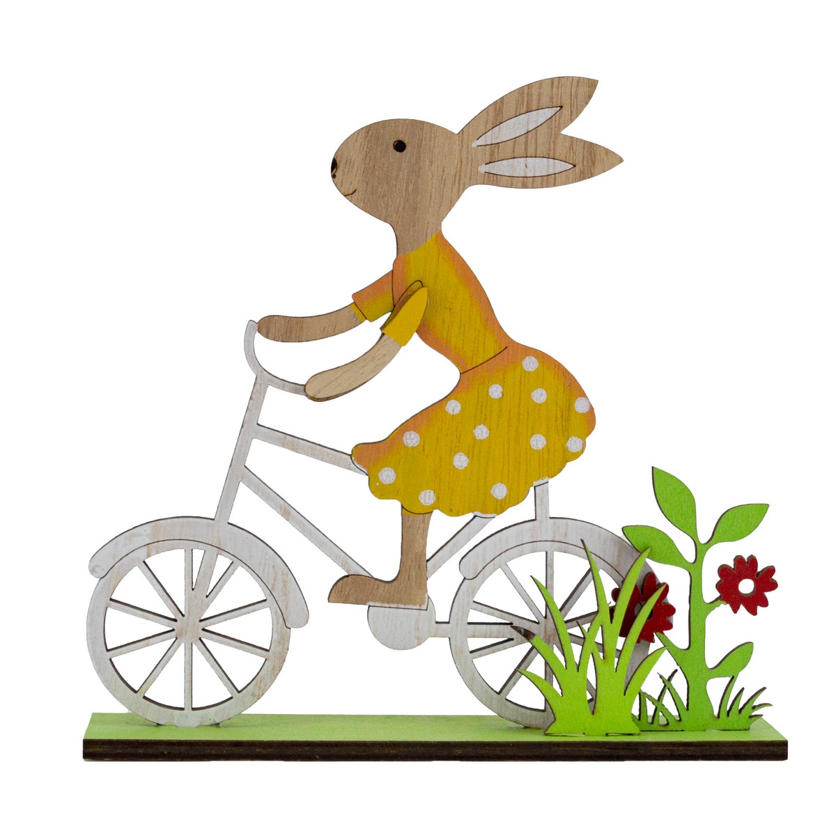 Сувенир Кролик на велосипеде (дерево), H16x15,5x4см, желтый