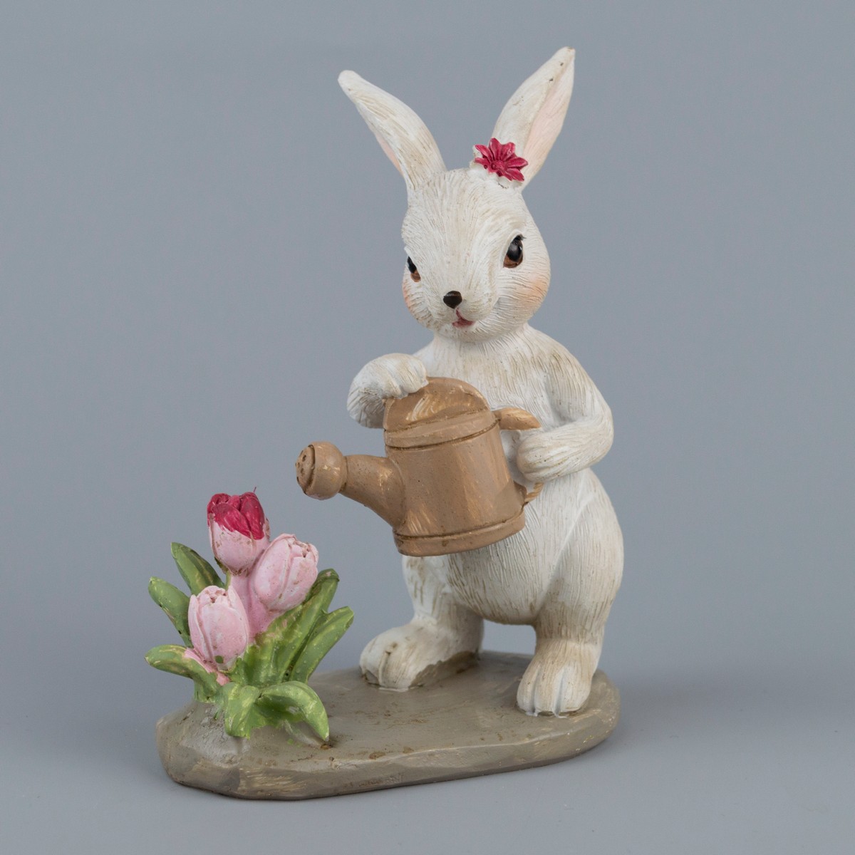 Сувенир Кролик с лейкой (полирезин), H12,5x10x5,5см, белый