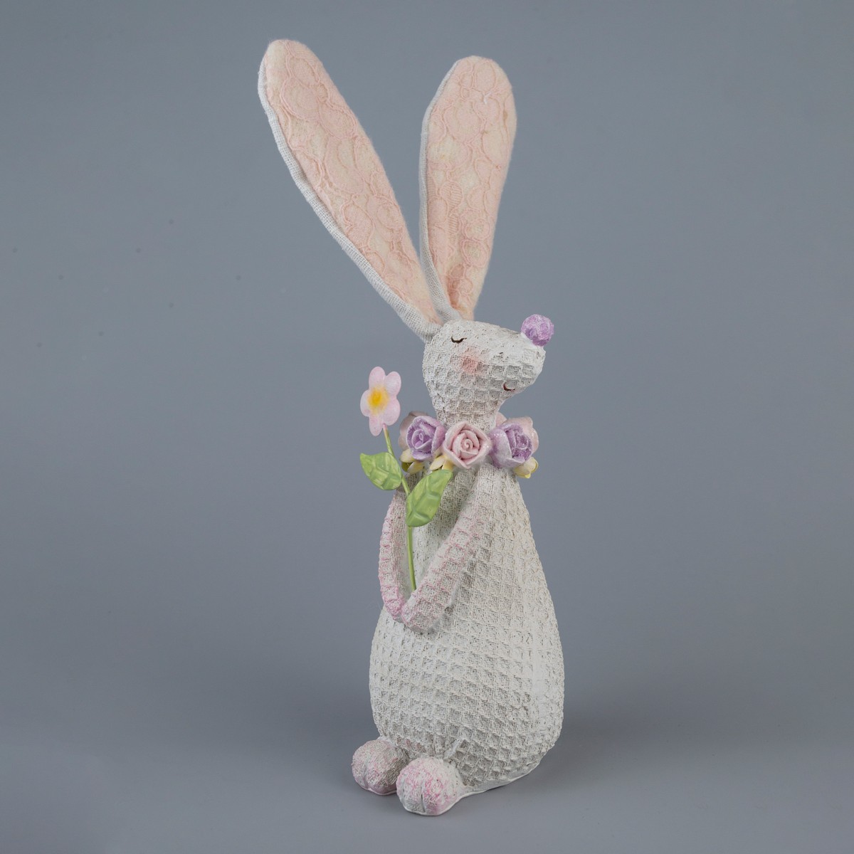 Сувенир Кролик с цветком (полирезин), H27x8,5x8,5см, белый/розовый