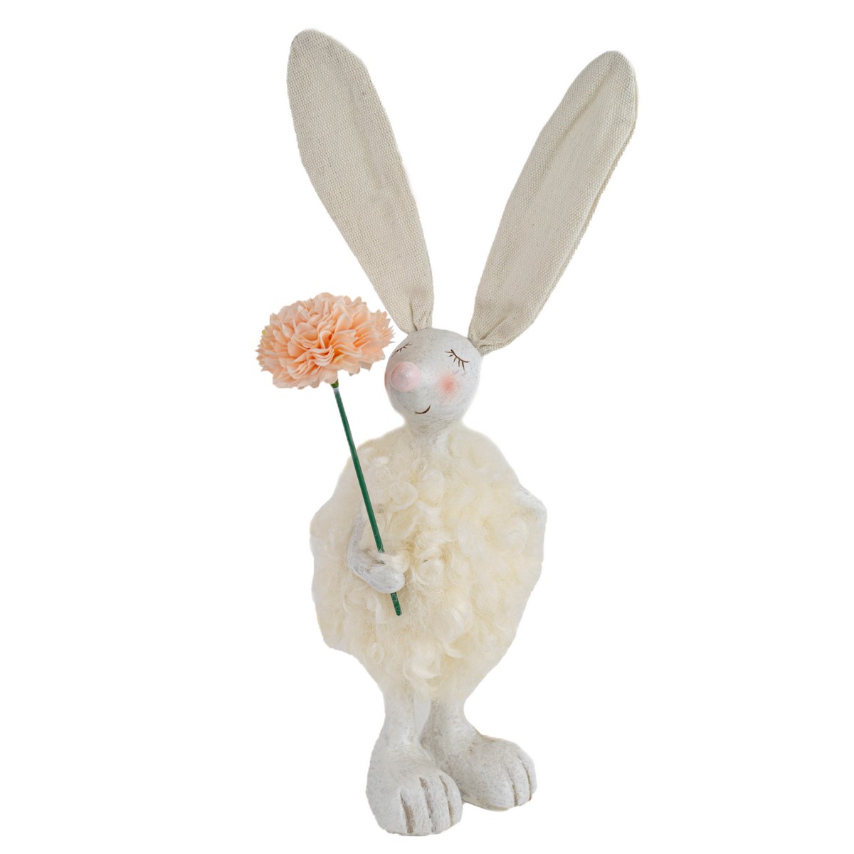 Сувенир Кролик с цветком (полирезин), H30x11x8см, белый