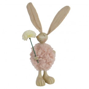 Сувенир Кролик с цветком (полирезин), H30x11x8см, розовый