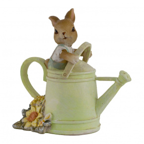 Сувенир Кролик в лейке (полирезин), H11x10,5x6см, зеленый