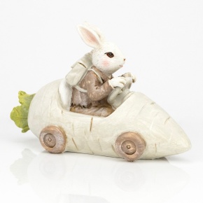 Сувенир Кролик в машине (полирезин), H10x16,5x6,5см, белый/коричневый