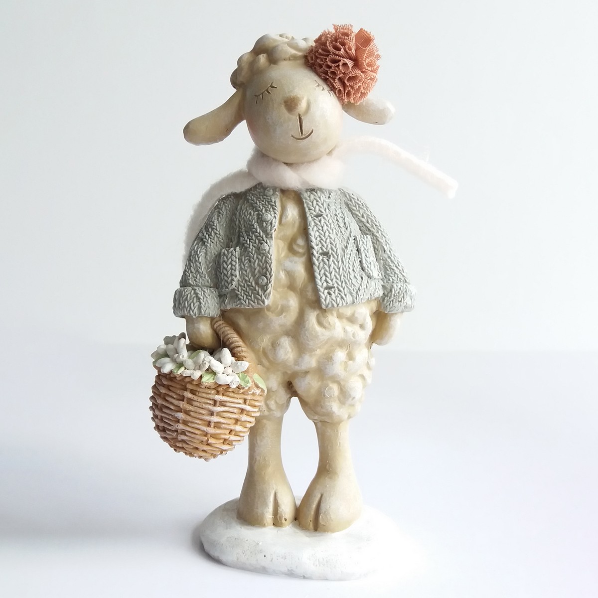 Сувенир Овечка с корзинкой (полирезин), H18x9x7см, кремовый