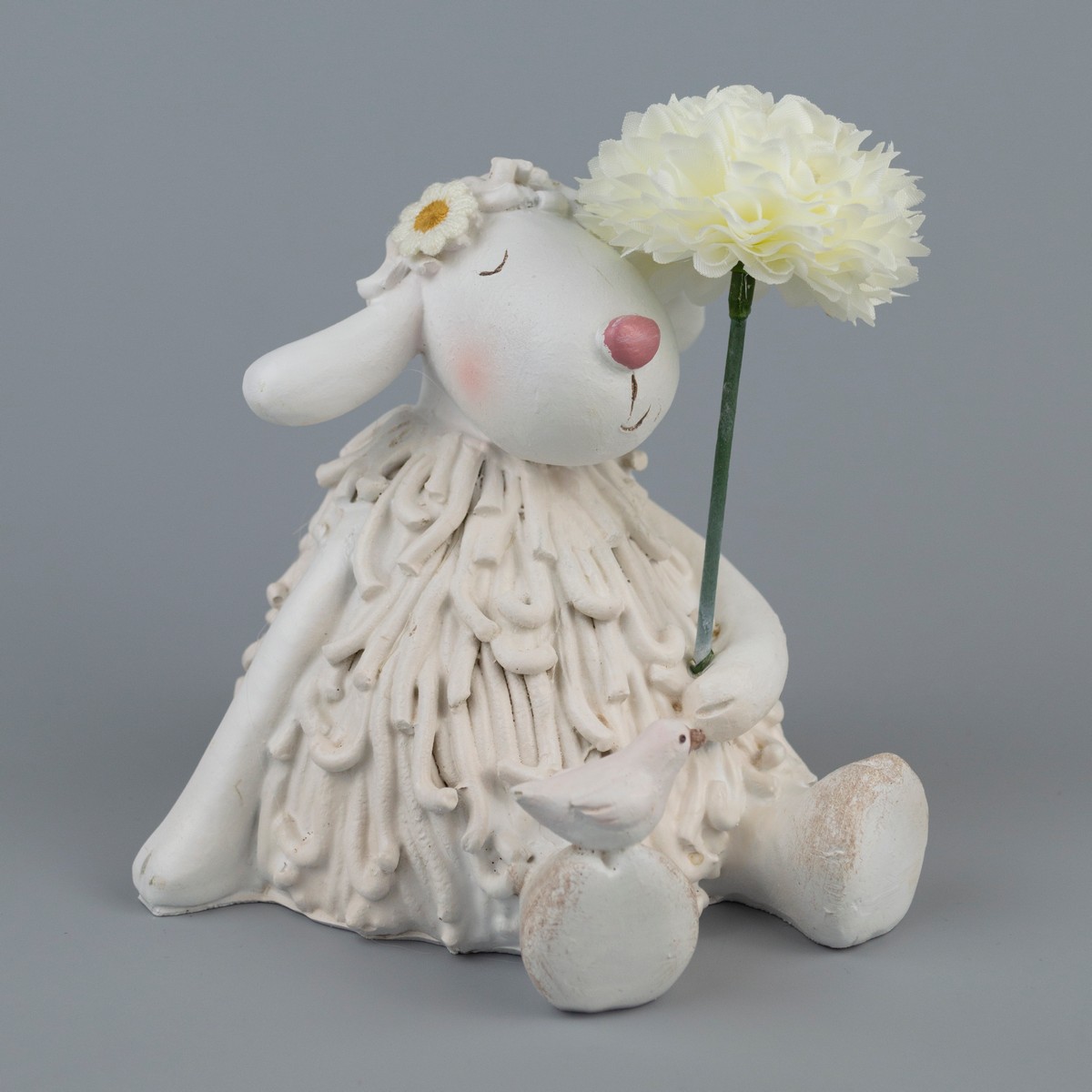 Сувенир Овечка с цветком (полирезин), H10,5x10x10,5см, белый
