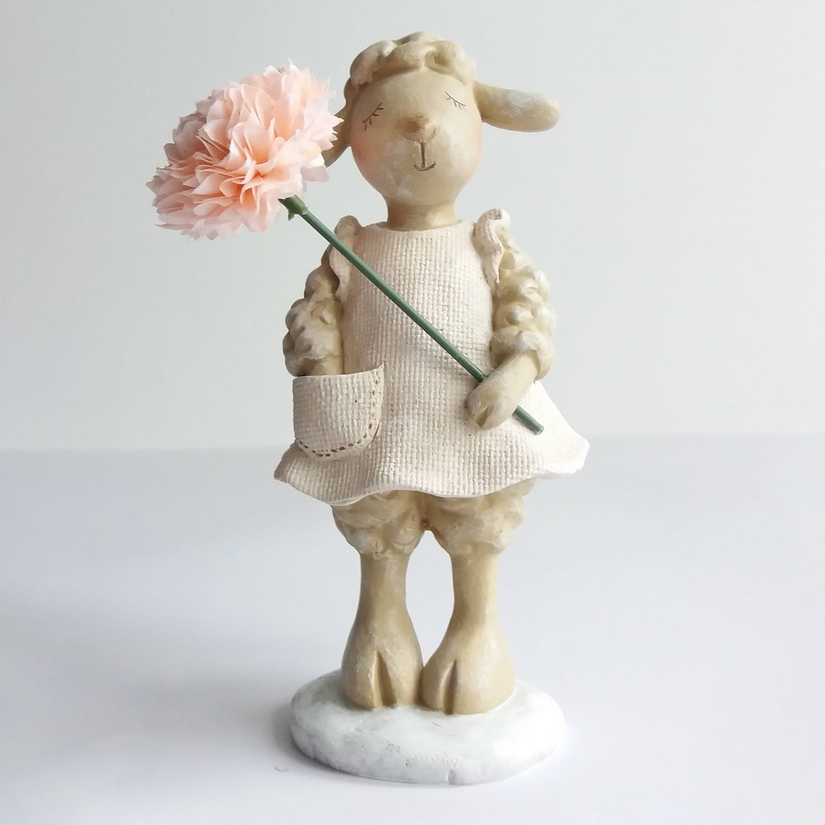 Сувенир Овечка с цветком (полирезин), H18x9,5x9см, кремовый