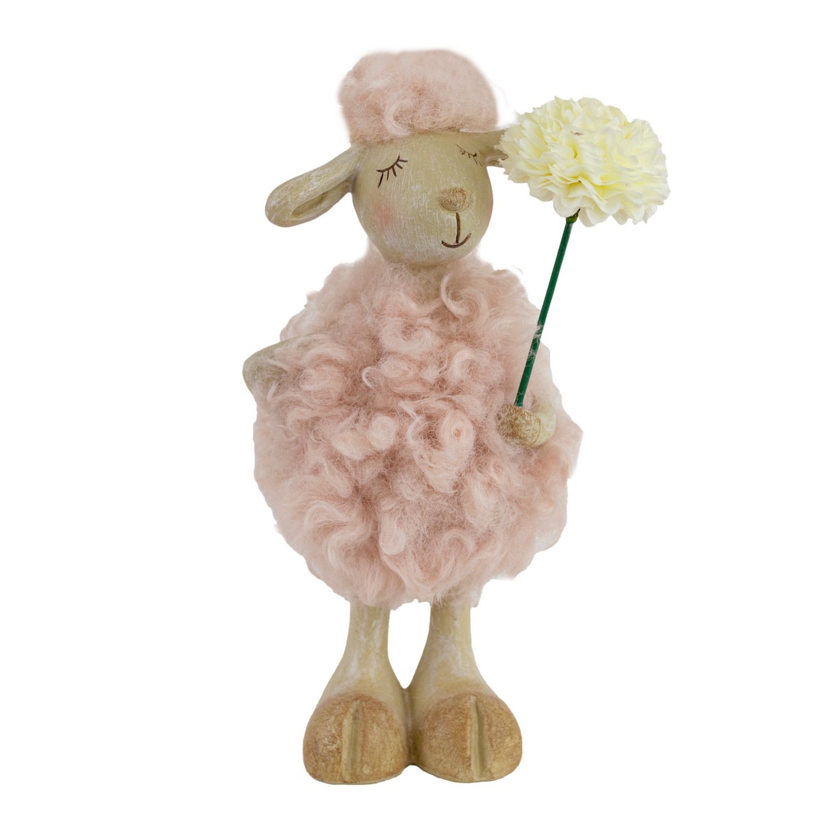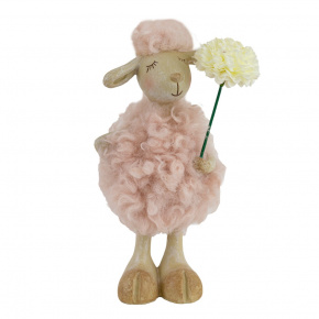 Сувенир Овечка с цветком (полирезин), H19x13x9см, розовый