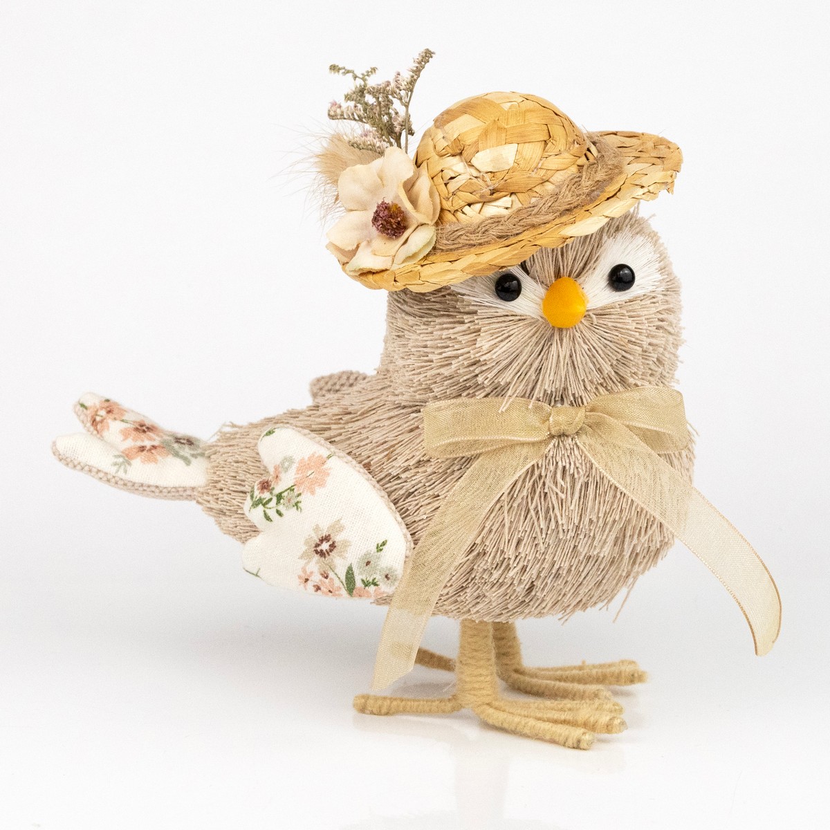 Сувенир Птичка (пенопласт/трава), H15x14x8см, серый/кремовый