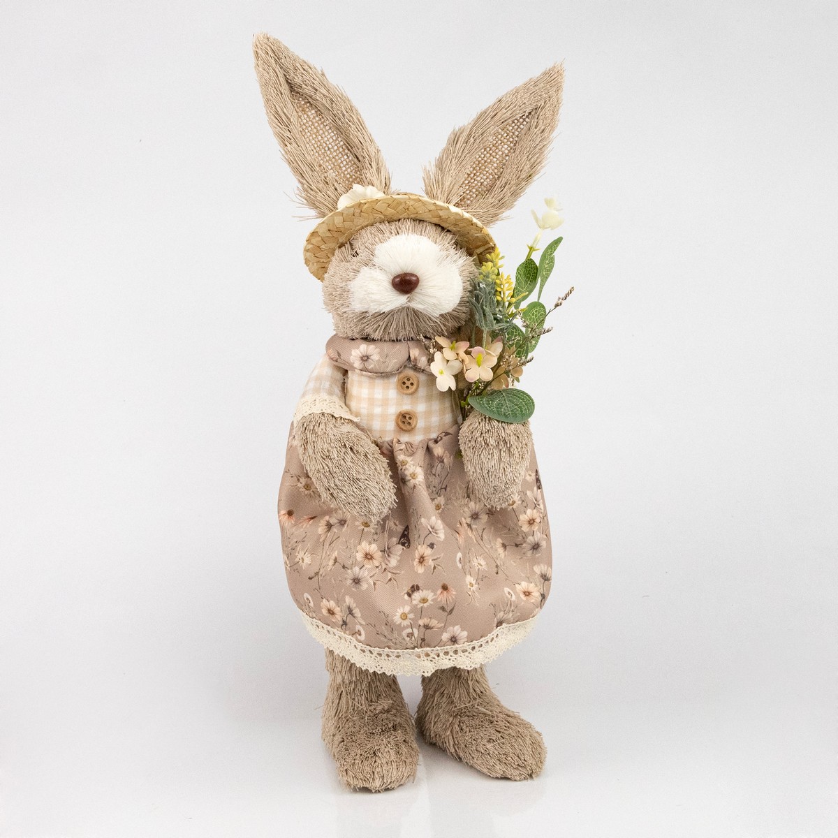 Сувенир Заяц девочка (пенопласт/трава), H40см, серый/кремовый