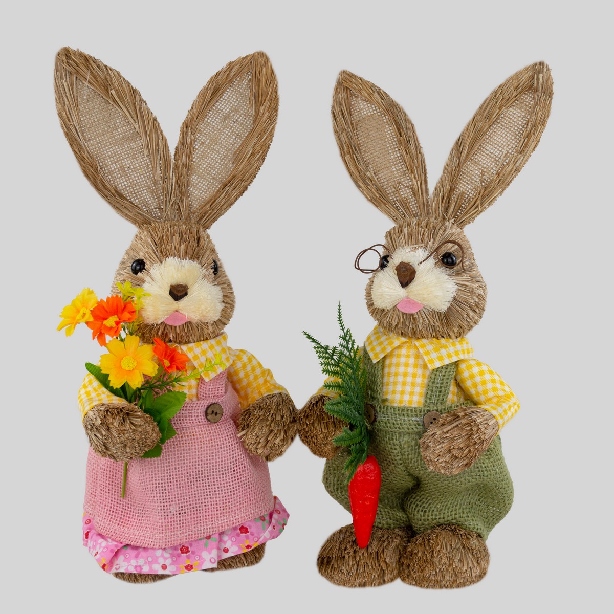 Сувенир Заяц Мальчик/Девочка (пенопласт/трава), H35см, в асс., коричневый