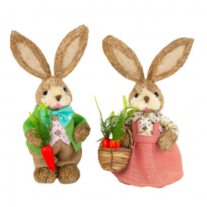 Сувенир Заяц Мальчик/Девочка (пенопласт/трава), H36см, в асс., коричневый