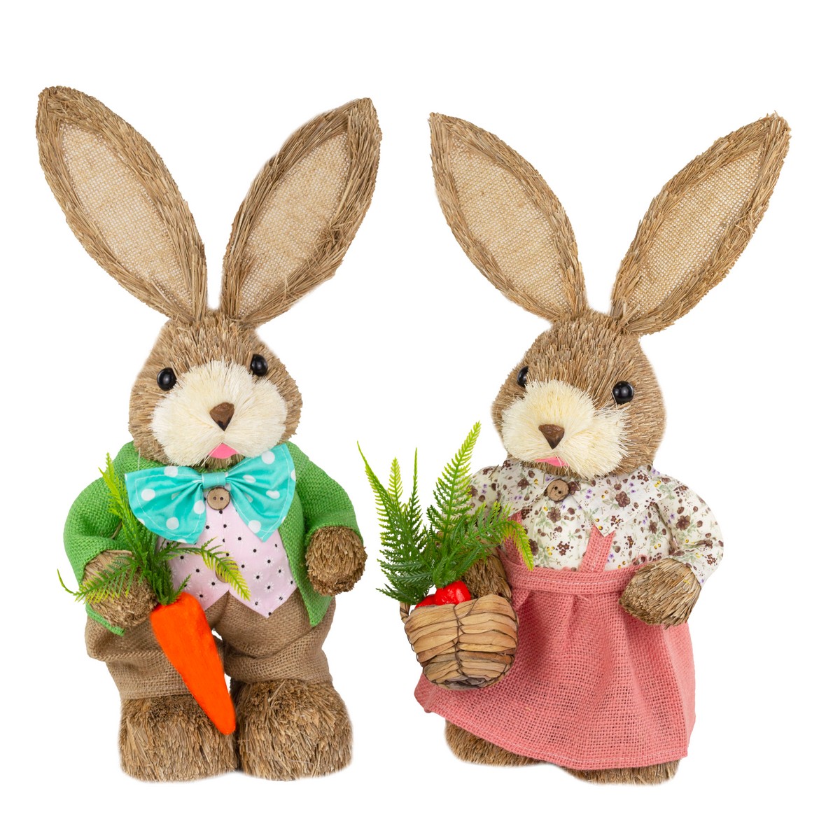 Сувенир Заяц Мальчик/Девочка (пенопласт/трава), H46см, в асс., коричневый