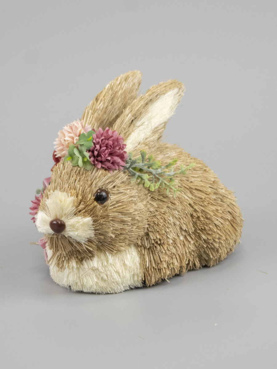 Сувенир Заяц (пенопласт, трава), H14х20х13см, коричневый/розовый