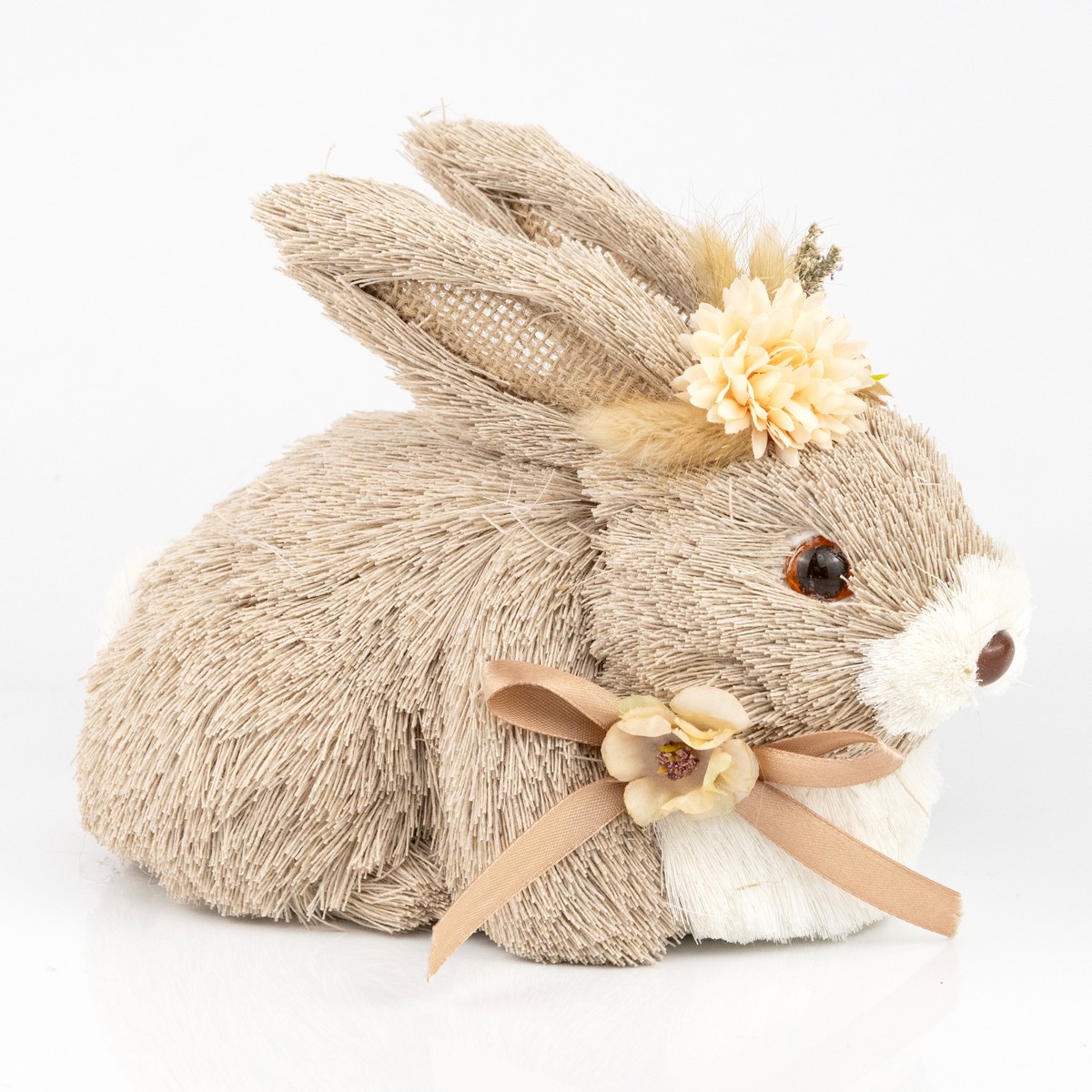 Сувенир Заяц (пенопласт/трава), H14х20x13см, серый/кремовый