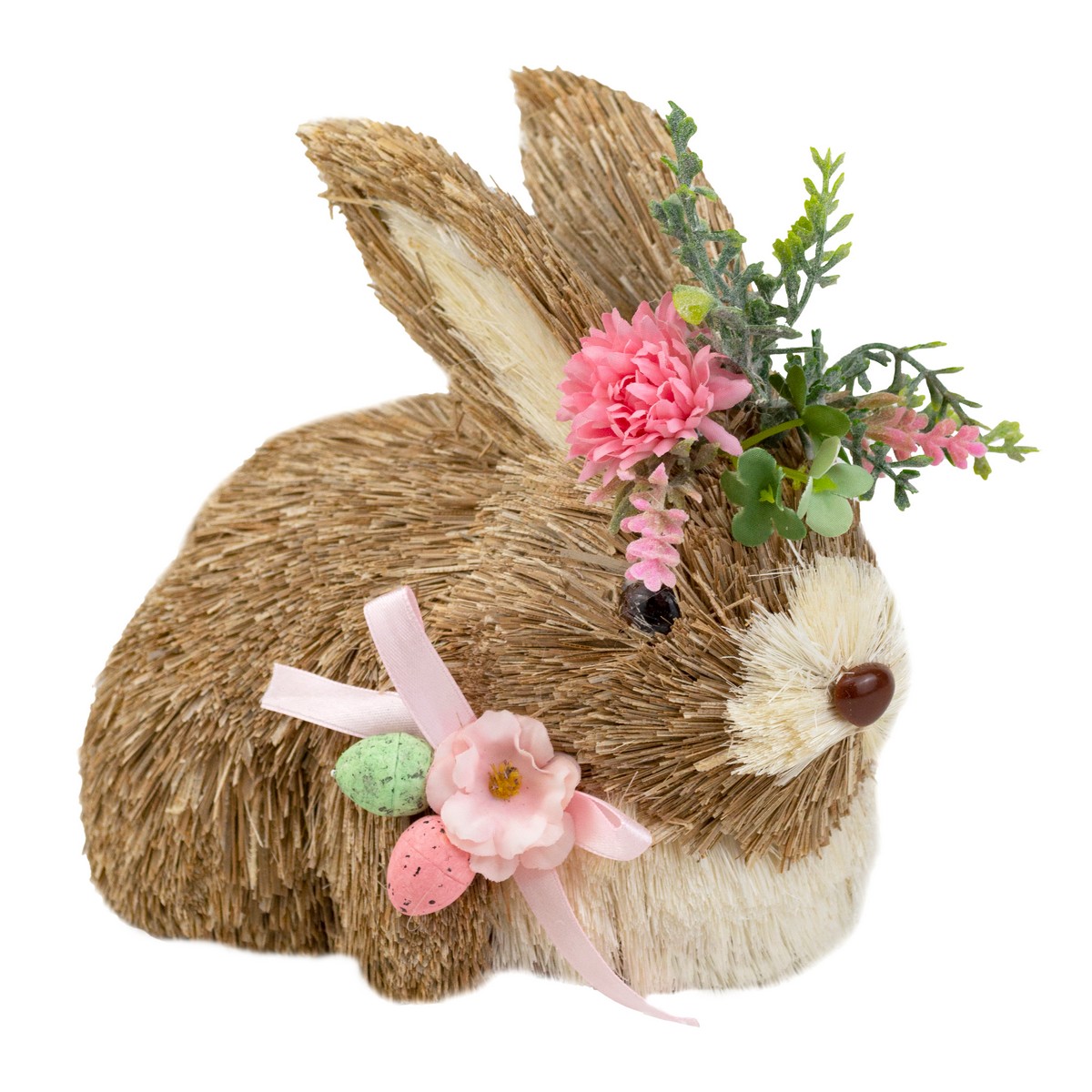 Сувенир Заяц (пенопласт/трава), H14x20x13см, коричневый/розовый