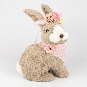 Сувенир Заяц (пенопласт/трава), H20x15x10см, серый/розовый