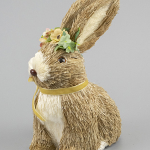 Сувенир Заяц (пенопласт, трава), H24х16х13см, коричневый/желтый