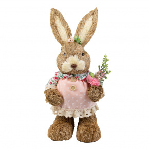 Сувенир Заяц (пенопласт/трава), H40x19x14см, коричневый/розовый