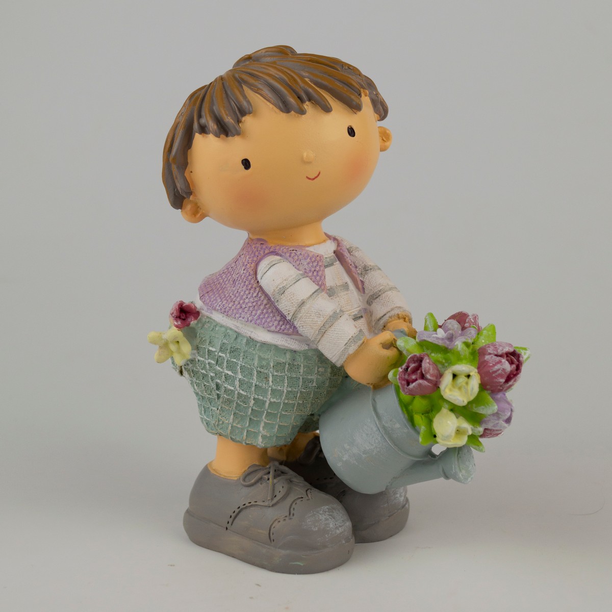 Сувенир Мальчик с лейкой (полирезин), H14,5х10,5х6см, сиреневый