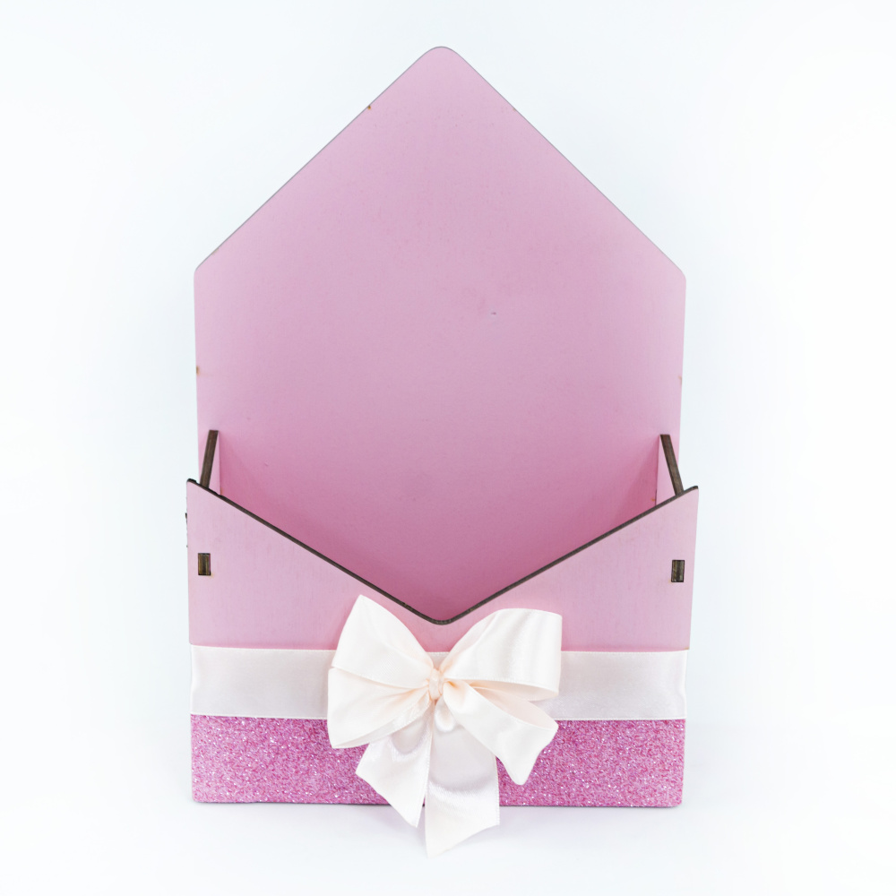 Кашпо Конверт с атласной лентой (фанера), H25,5x17x6,5см., розовый