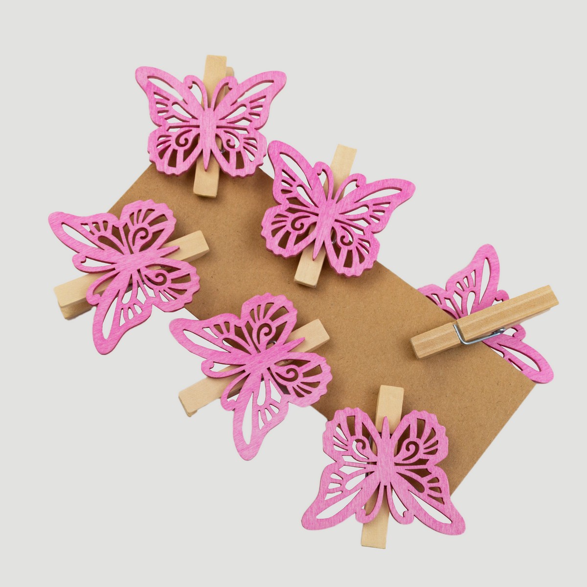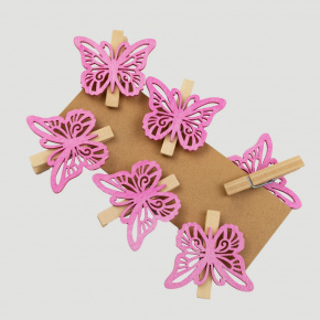 Набор бабочек на прищепке 6шт., 6см, розовый