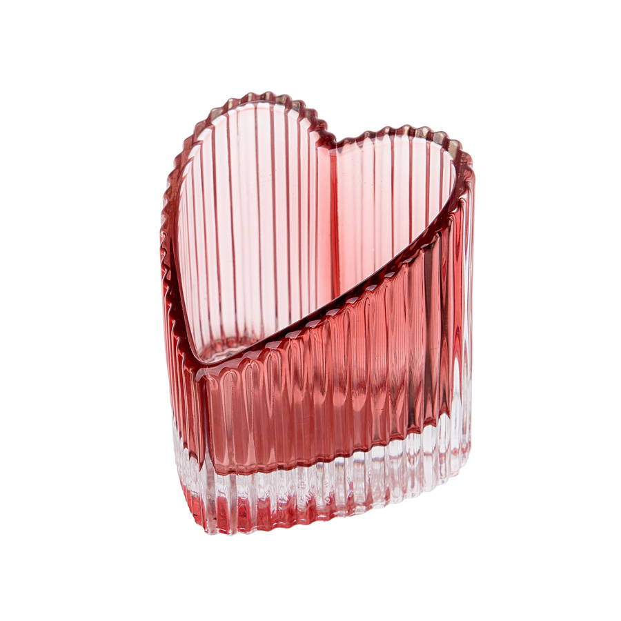 Подсвечник Сердце (стекло), Н9см, в асс., роз./бел.