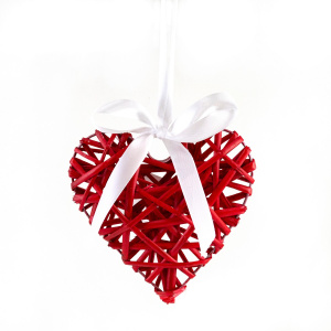 Сердце плетеное подвесное (ива), D15xH4 см, красный